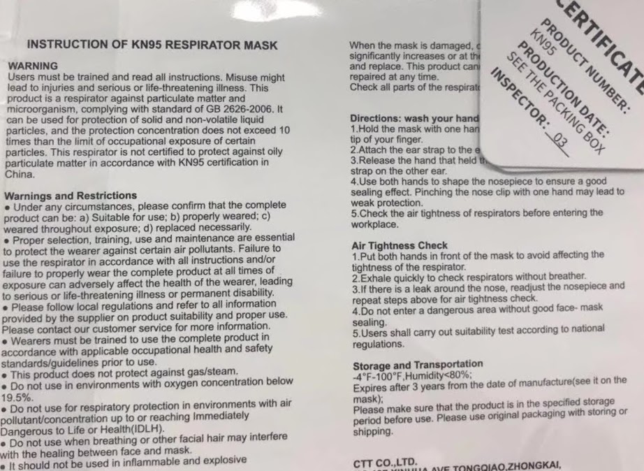 The ‘N95’ designation means that when subjected to careful testing, the respirator blocks at least 95 percent of very small (0.3 microns) test particles. If properly fitted, the filtration capabilities of N95 respirators exceed those of face masks.
